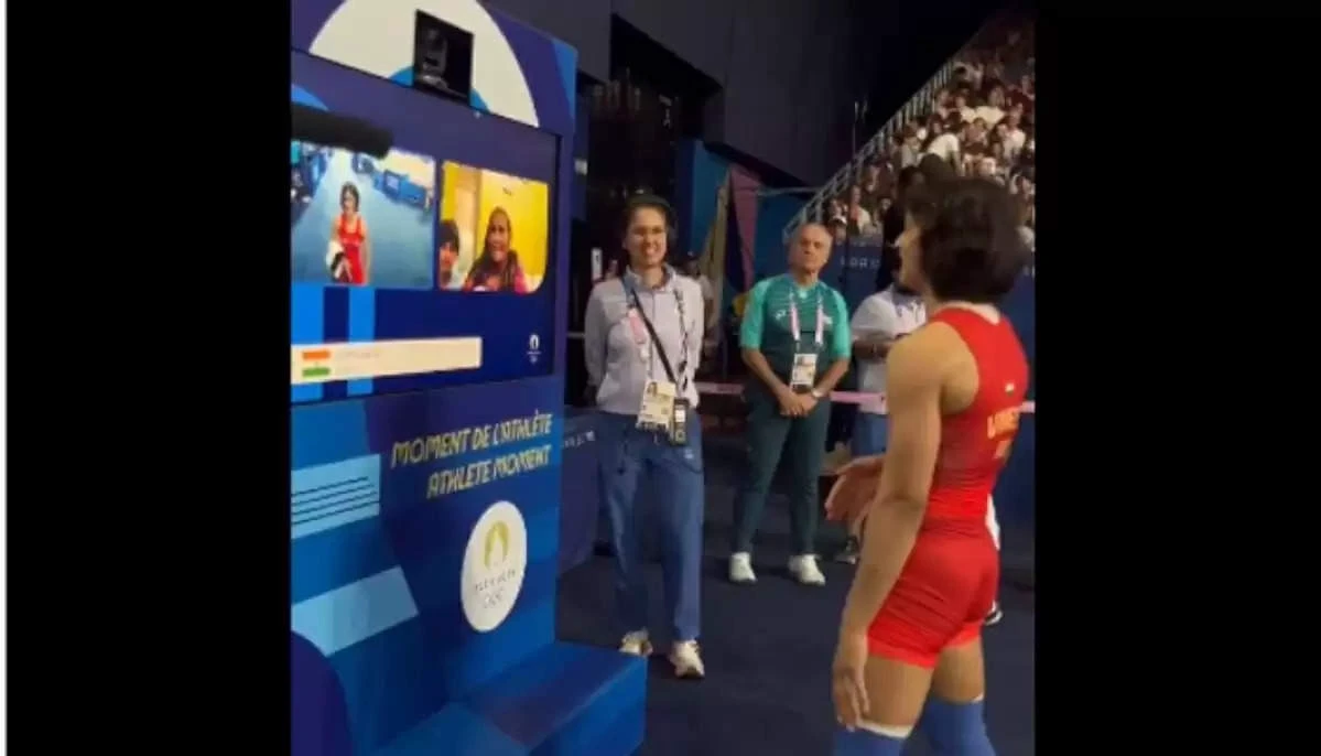 ഇതിന് പിന്നാലെയായിരുന്നു ഗെയിംസ് വേദിയില് വച്ച് വീഡിയോ കോളില് അമ്മയുമായി വിനേഷ് ഫോഗട്ട് സംസാരിച്ചത്. ഇതിന്റെ വീഡിയോ സാമൂഹ്യമാധ്യമങ്ങളില് വൈറലായിരുന്നു. ഞാന് സ്വര്ണ മെഡല് കൊണ്ടുവരും എന്ന് ഫോഗട്ട് അമ്മയ്ക്ക് വാക്ക് കൊടുക്കുന്നത് വീഡിയോയില് ദൃശ്യമായിരുന്നു. അമ്മയ്ക്കും കുടുംബാംഗങ്ങള്ക്കും സ്നേഹപൂര്വം ഫ്ലൈയിംഗ് കിസ് വിനേഷ് ഫോഗട്ട് നല്കുന്നതും വീഡിയോയില് കാണാനായി. ഈ ദൃശ്യങ്ങള് ഇപ്പോള് വീണ്ടും ചര്ച്ചയാവുകയാണ്.